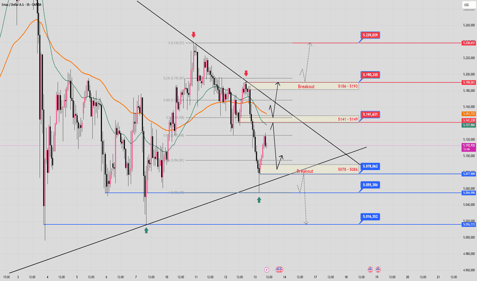 - Zona (5186 - 5193) saat ini merupakan area resistensi penting; breakout dari zona ini akan menyebabkan momentum naik yang lebih kuat. Zona (5078 - 5086) saat ini merupakan area support penting; breakout dari zona ini akan membuka pergerakan turun yang lebih luas di pasar.