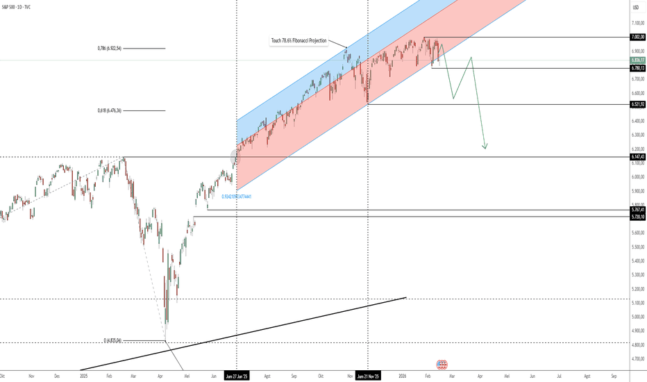 TVC:SPX sedang Breakdown dari Support yang paralel dengan Trendline dari Regression Line sejak Juni 2025 sampai November 2025 (dengan R2 sebesar 92.4). Kami proyeksikan pergerakan Downtrend dimulai dalam waktu dekat dengan potensi menuju 6,500 sampai 6,150.