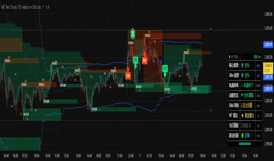 AOT Red Storm V25 是一套面向实盘交易员的“机构级趋势可视化套件”,采用封闭源码 + 邀请制。
