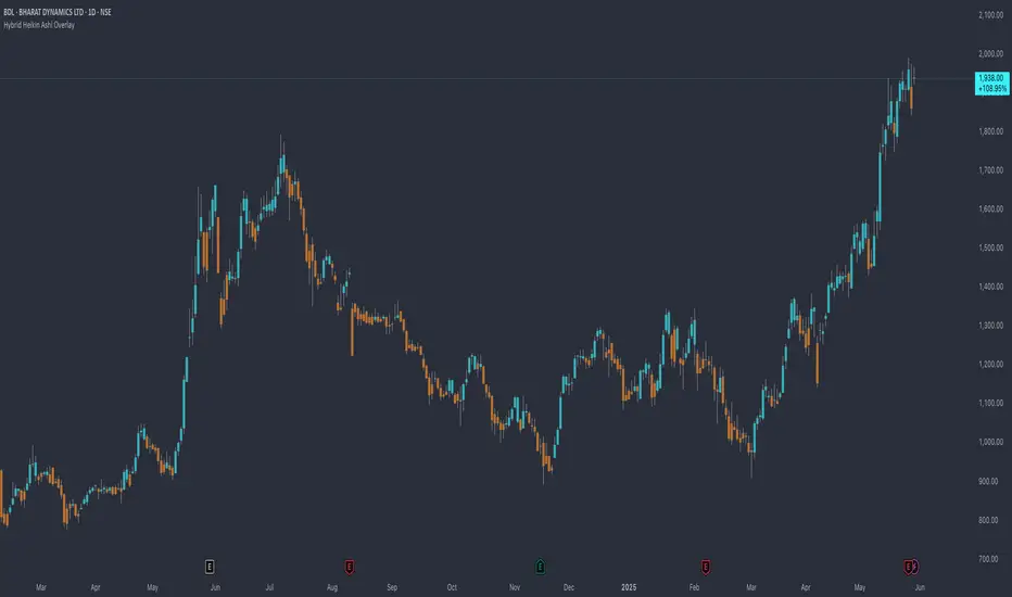 This indicator overlays Heikin Ashi-style background colors while keeping regular candles intact — giving you the best of both worlds:
