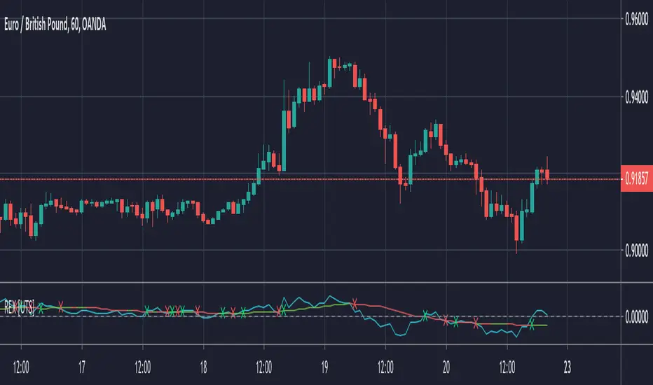 Signals are created when Rex is crossing the Signal line. They that can be used to EXIT or LONG/SHORT a trade.