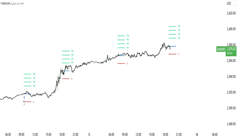 - **TPbuy1 - TPbuy4 و TPsell1 - TPsell4**: مستويات الربح المستهدفة (TP) للشراء والبيع.