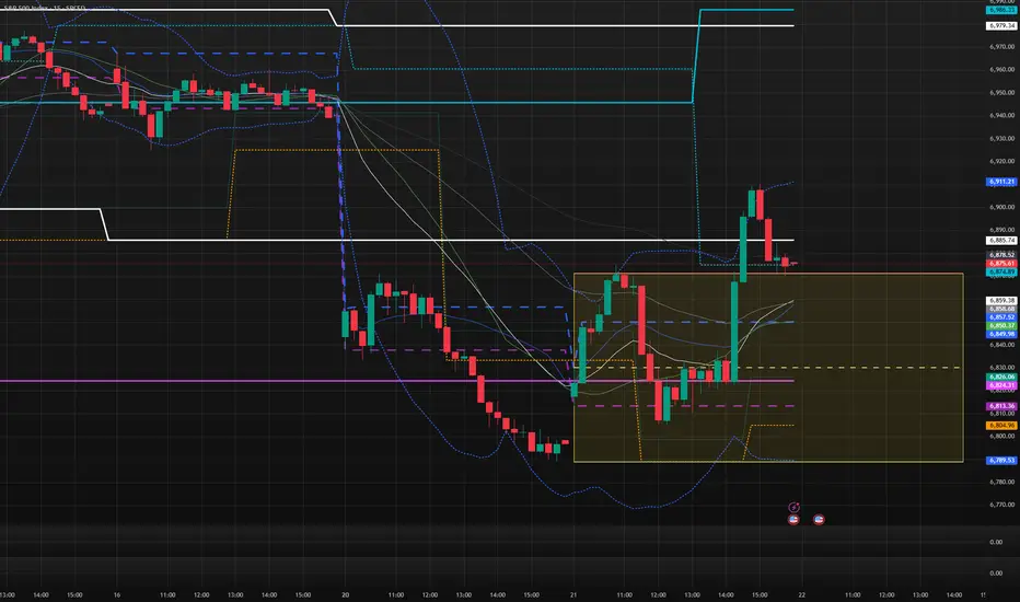 Yellow Box + PDH/PDL lines: Core daily range (RTH or Globex depending on toggle) — price often respects/breaks these.