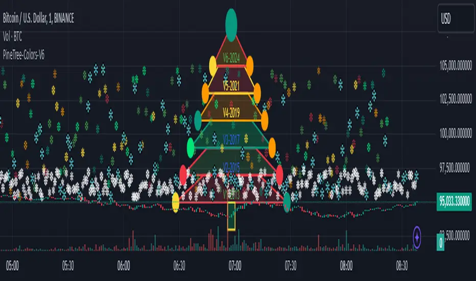 Merry Christmas!!!This is PineScript Version Tree in COLORS....as a Pine Tree (Christmas Tree) !!! This is how it all started from Version1 (V1) to Version 6 (V6) and on and on....