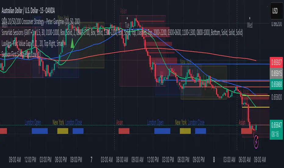This indicator automatically identifies and marks the high and low price levels established during the first 5 minutes of major trading sessions, helping traders identify key intraday support and resistance zones.