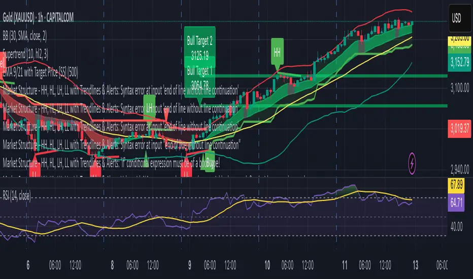 This Pine Script is designed to help identify key market structure patterns such as Higher Highs (HH), Higher Lows (HL), Lower Highs (LH), and Lower Lows (LL) on price charts. It also draws trendlines connecting the respective swing points and provides alerts when these important price patterns occur.