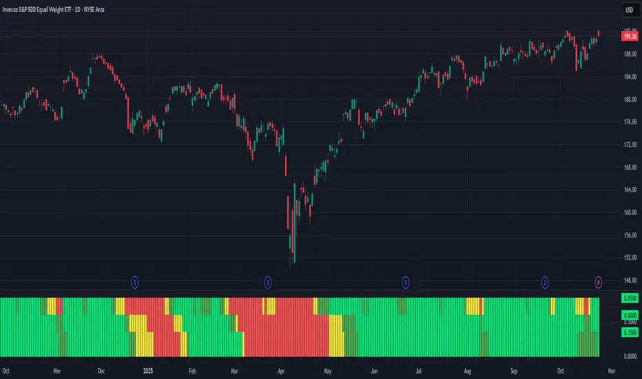 This indicator is best used as a trend filter before making trading decisions. Traders may find more consistent setups when the majority of the heatmap supports the direction of their trade. Green-dominant conditions suggest a trending bullish environment where long trades can be favored. Red-dominant conditions indicate bearish momentum and stronger potential for short opportunities. When yellow becomes more prominent, the market may be transitioning, ranging, or gearing up for a breakout, making timing more challenging and risk higher.