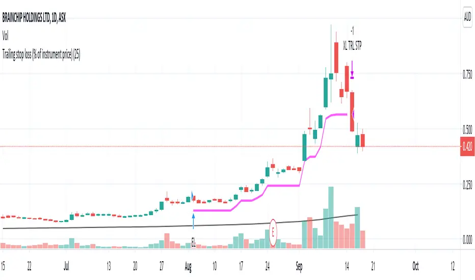 This script enters on a long term breakout and exits using a 25% trailing stop