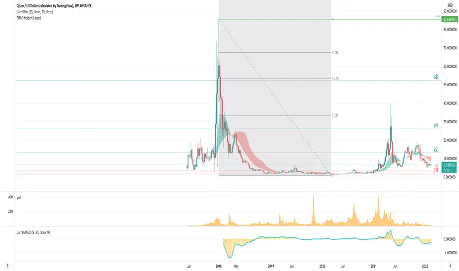 SHAD strategy consists in selling half the position every time price doubles, thus this indicator displays values for x2, x4, x8 and x16 of current closing price.
