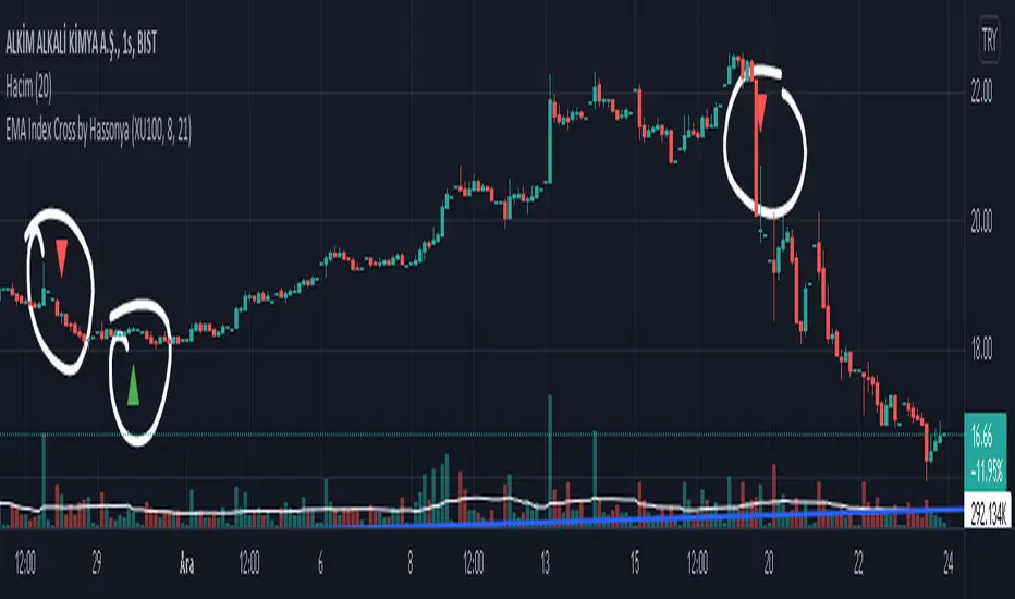 Bu sayede normal bir hisse senedi grafiği üzerinde çalışırken endeks grafiğinin ema kesişimlerini takip edebileceksiniz.