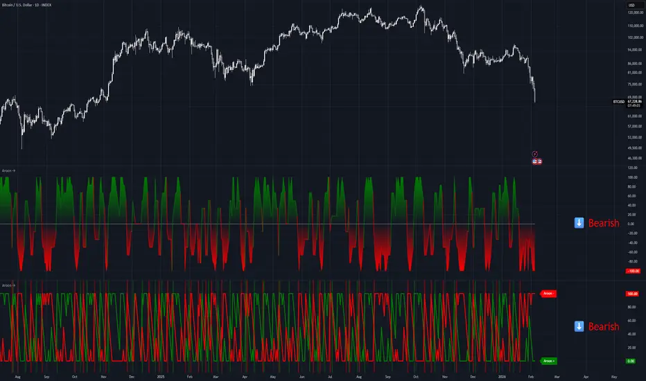 Clear Labels: Direct labeling of both Aroon lines for easy reading