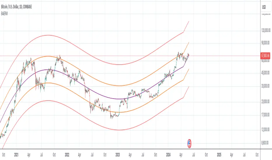 Time Preference and Market Cycles: The exponential decay component of the damping function, represented by the term e^(-0.0004t), can be linked to the concept of time preference and its impact on market dynamics. In financial markets, the discounting of future cash flows is a common practice, reflecting the time value of money and the inherent uncertainty of future events. The exponential decay in the damping function serves a similar purpose, diminishing the influence of past market cycles as time progresses. This decay term introduces a time-dependent weight to the cyclical component, capturing the dynamic nature of the Bitcoin market and the changing relevance of past events.