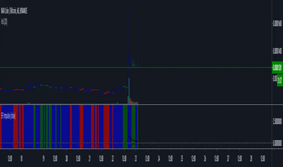 Efi long > 0 (bullish trend) and efi short < 0 = buy signal (green bar)