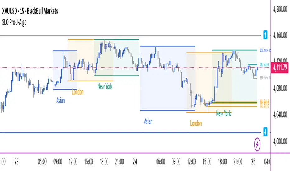 This indicator is designed for traders who utilize institutional trading concepts, specifically liquidity sweeps and optimal trade entry (OTE) zones, combined with session-based market structure analysis. It identifies potential market manipulation points where stop losses are likely clustered, and highlights high-probability entry zones based on Fibonacci retracements.