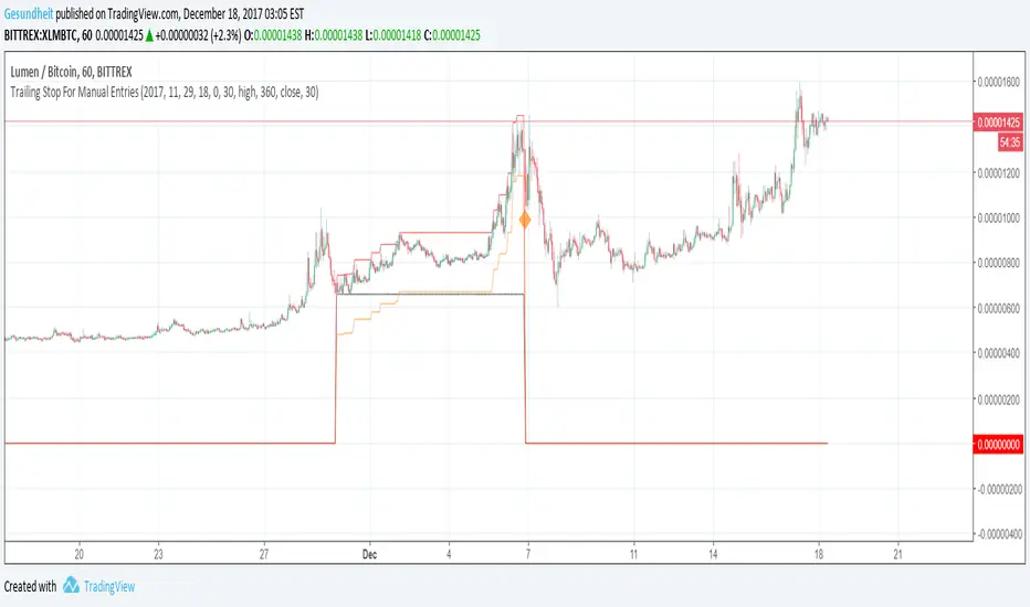 Remember that annoying issue where you might not be able to precisely specify entry price, because you want to use 3 hour closing prices for your trailing stop but you bought in at 7:41 pm? Add this indicator to a 1 minute chart and set your start time to 19:41, then set the trailing time frame to 3 hours!