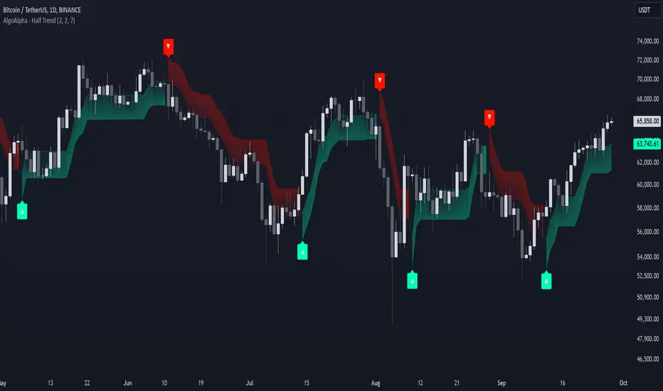 Enhance your trading strategy with the Half Trend Regression indicator by AlgoAlpha and gain a statistical edge in the markets! 🌟📊