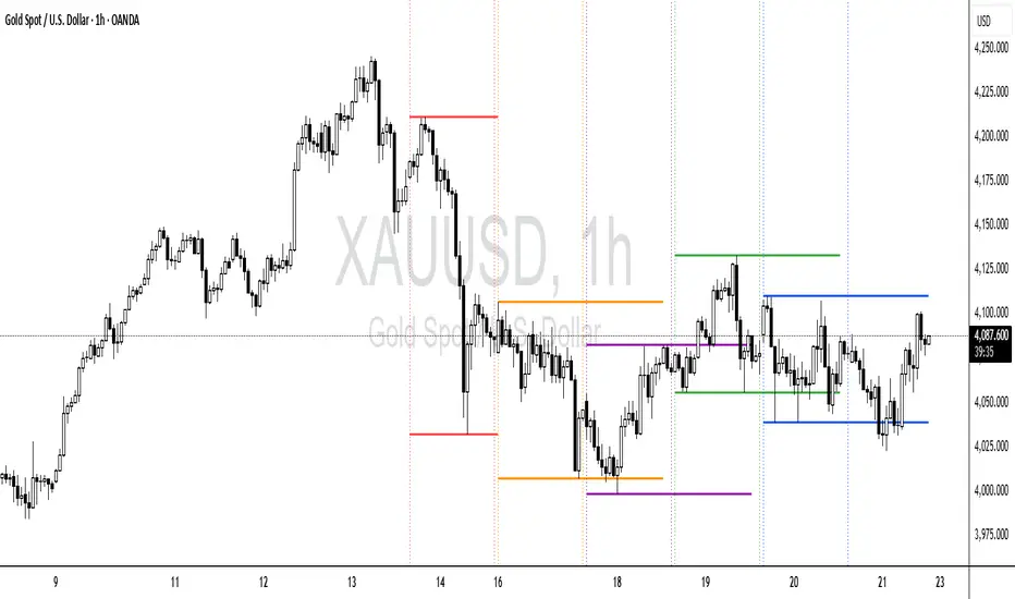 Smart Color Coding: The indicator automatically cycles colors for each day (Blue = Yesterday, Green = 2 Days Ago, etc.), making it instant to read historical price action.