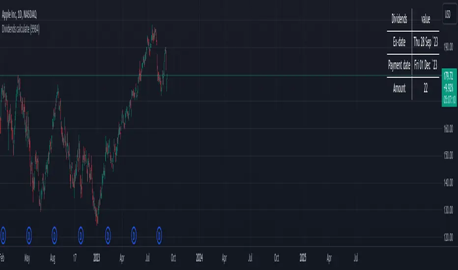 The indicator displays the date and amount of future dividends for the selected symbol.