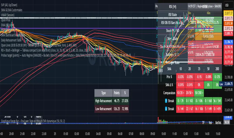Probability tab with SMA and EMA10,20,35,50,200 , RSI and BB