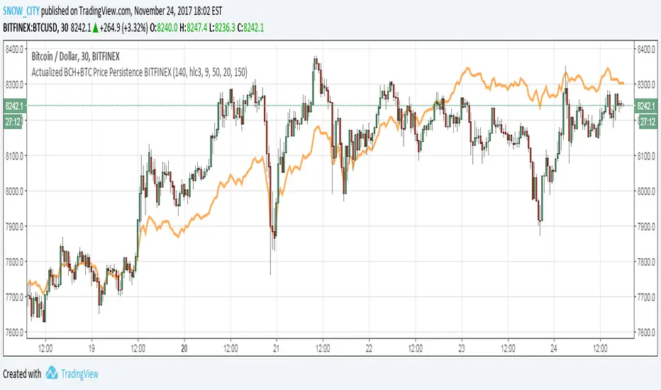 Price Line overlay shows combined BCH+BTC price normalized to the price of BTC, which is the realtime combined price (BCH+BTC) averaged over the SMA of BTC - SMA of BCH.