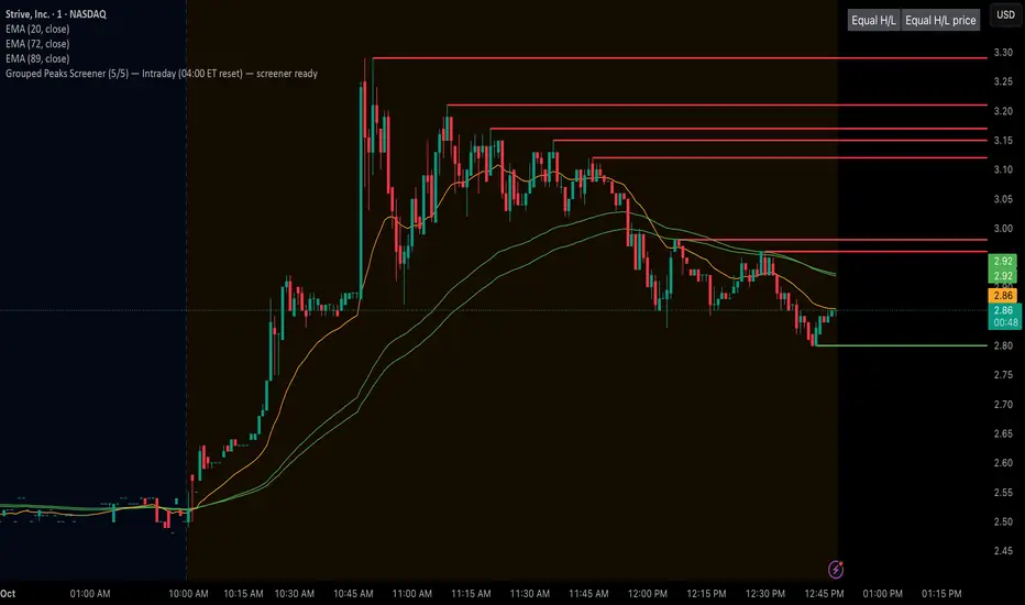 indicator("Grouped Peaks Screener (5/5) — Intraday (04:00 ET reset) — screener ready", overlay=true, max_lines_count=500, max_labels_count=0, max_boxes_count=0)