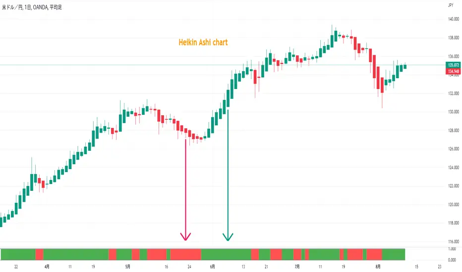 This indicator shows whether Heikin Ashi is up or down, represented by a bar. This indicator is compatible with MTF.
