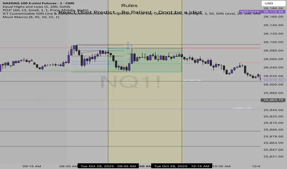 New york macro script. Marks and highlights when macro is on new york time session. Also the inner box marks out the high and low inside the macro