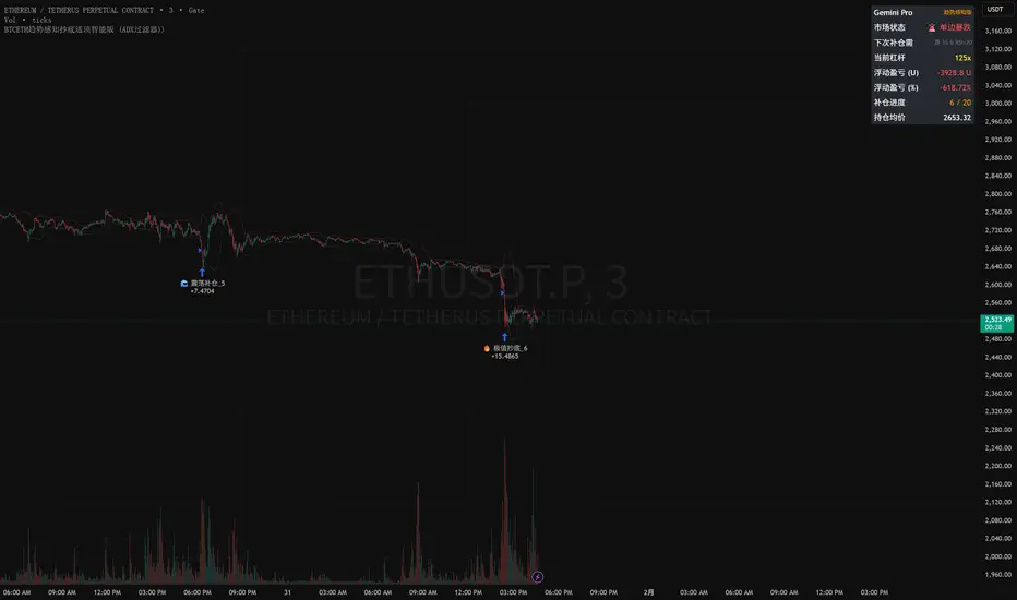 2. **暴跌模式**:当 ADX > 25 且行情剧烈下跌时,触发防御机制,自动拉大补仓间距,只在极值位抄底。