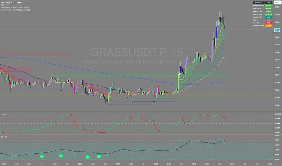 2. **Momentum:** **RSI PRO** displays a **Bullish Divergence** (Green Label).