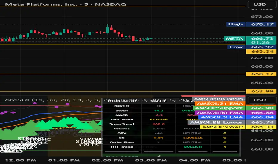 Perfect for traders of SPY, QQQ, and high-volume stocks, this indicator eliminates guesswork by providing clear BUY CALLS and BUY PUTS signals based on multiple technical confluences.