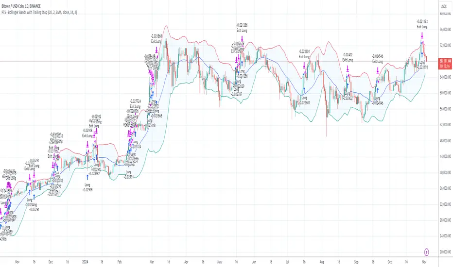 The "PTS - Bollinger Bands with Trailing Stop" strategy provides a framework to leverage momentum breakouts while managing risk through adaptive trailing stops. Customize and test thoroughly to align with your trading objectives.