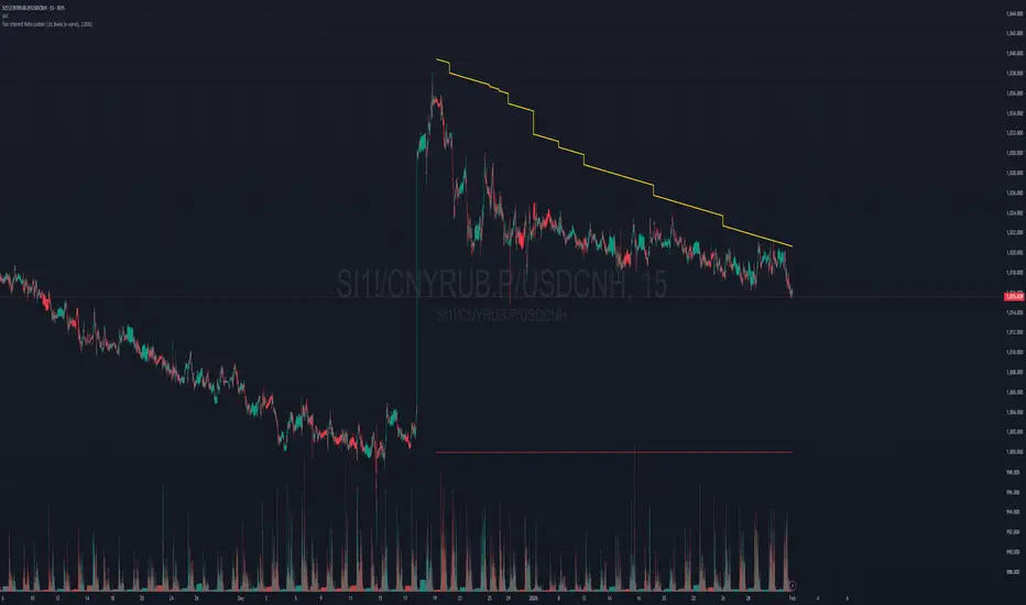 Displays the remaining interest rate relative to a specific expiration date. Compatible with both ascending and descending price trends (toggleable in Settings). The smooth decay visualization offers better clarity compared to standard daily horizontal levels.