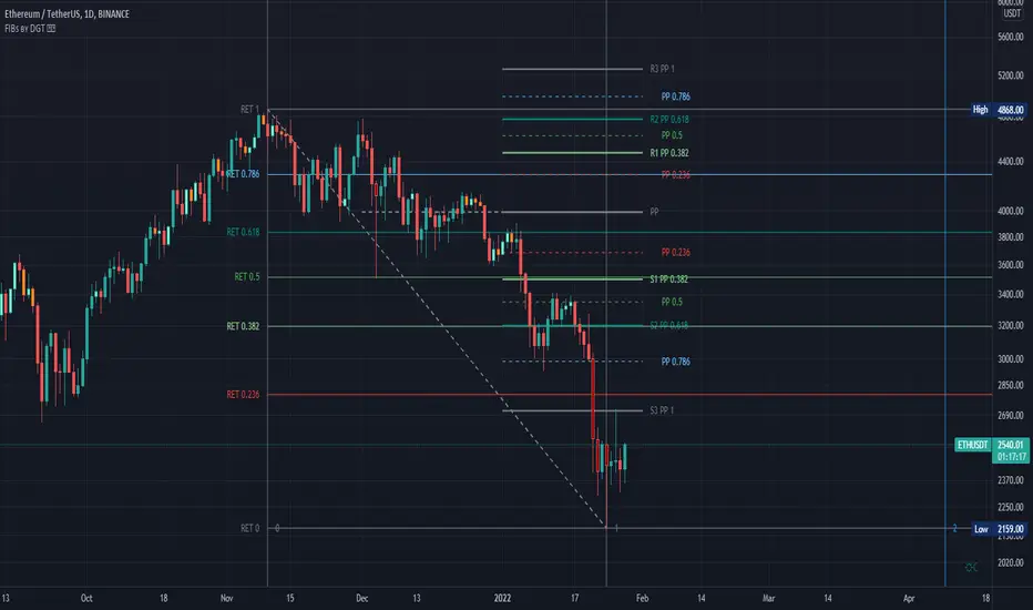 █ Pɪᴠᴏᴛ Pᴏɪɴᴛꜱ — is a technical indicator that is used to determine the levels at which price may face support or resistance. The Pivot Points indicator consists of a pivot point (PP) level and several support (S) and resistance (R) levels. PP, resistance and support values are calculated in different ways, depending on the type of the indicator, this study implements Fibonacci Pivot Points