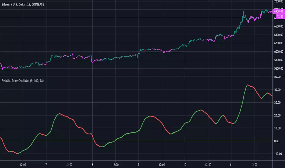 Bullish when line is green, bearish when line is red. Buy on first green, then sell on first red.