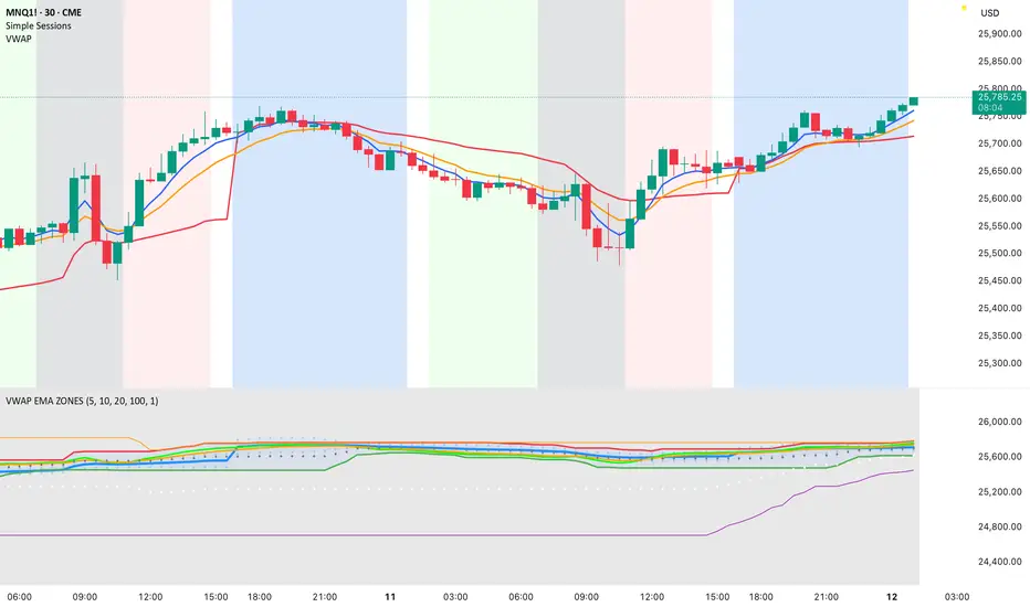 VWAP (Blue Line), Volume-weighted average price of current session,Institutional fair value
