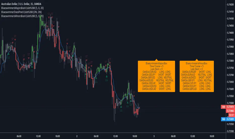 If scalping minute candles. Have trading screen split in two, BlueswimmersMajorsBoxV1sloth288 on one side, and BlueswimmerDoesPine on the other. that way when flicking between different charts the indicator does not need to load security data over and over again. This is also the reason why the time frame setting is there, so on the screener it can be just loaded to low time frames, and to double check a trade on the other screen you can zoom out to larger time frames and not reloading data over and over again.