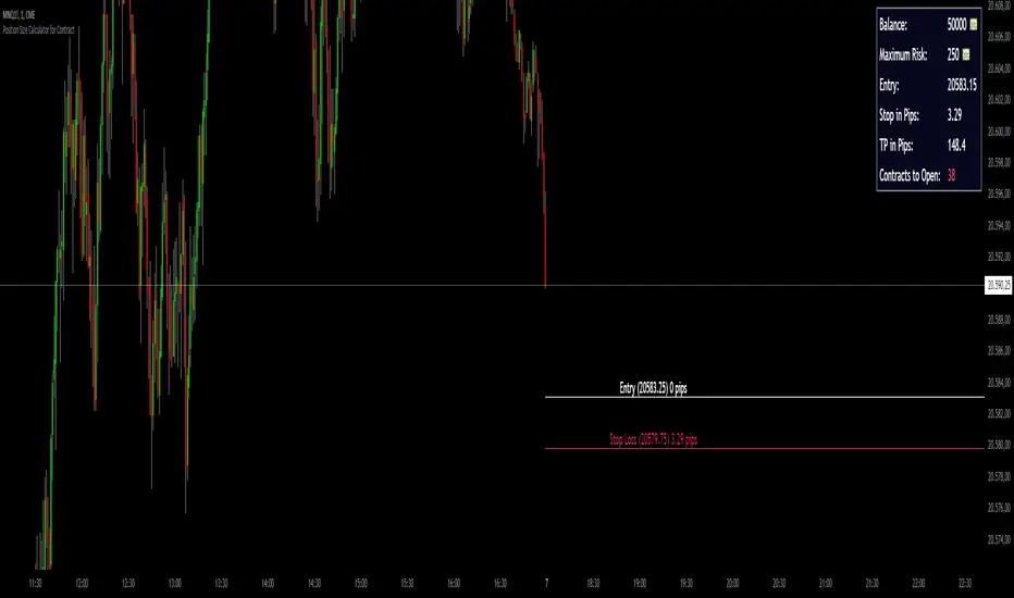 Position Size Calculator is a versatile Pine Script tool designed to help traders manage their risk and position sizing effectively. This script calculates essential trading metrics and visualizes them directly on your chart, helping you make informed trading decisions.