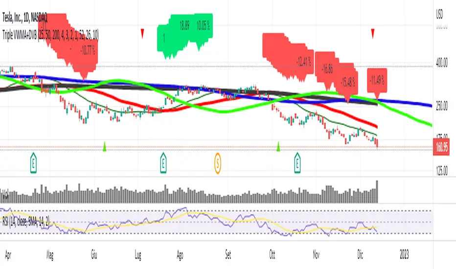 Ciao ragazzi, questo script vi offre tre VWMA (Media Mobile Ponderata sui Volumi) con quattro bande ottenute da quattro deviazioni standard dalla prima VWMA e non dalla SMA (Media Mobile Semplice), come avviene nelle bande di Bollinger.