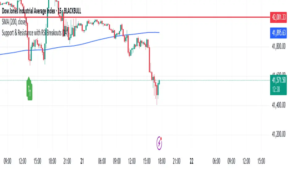 The script is a TradingView Pine Script (v5) indicator that identifies support and resistance levels using RSI (Relative Strength Index) breakouts. Here’s a breakdown of what it does: