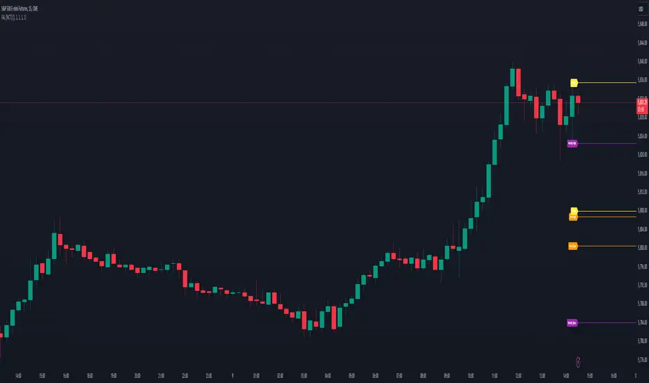 Previous Day's Levels: These include the open, high, low, and close of the previous trading day. They are represented on the chart by lines and labels, helping to identify significant price levels from the prior session.