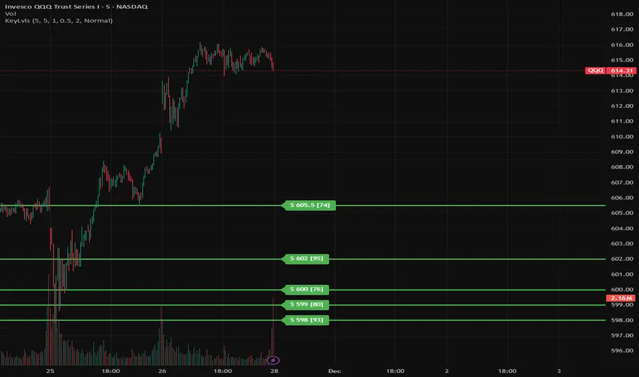 Key Levels Pro is a precision-built market structure indicator designed to instantly identify the most influential price zones driving intraday and swing-level movement. Using adaptive algorithms that track liquidity pockets, volume concentration, volatility shifts, and historical reaction points, the indicator automatically plots dynamic support and resistance levels that institutions consistently respect.