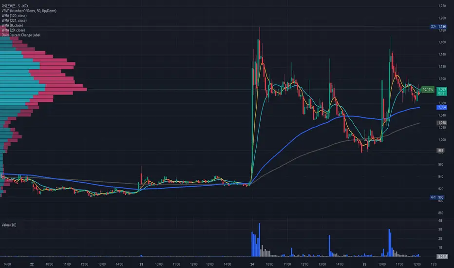 Dynamic Label: Shows the percentage change as a label aligned with the current price, updating in real-time.