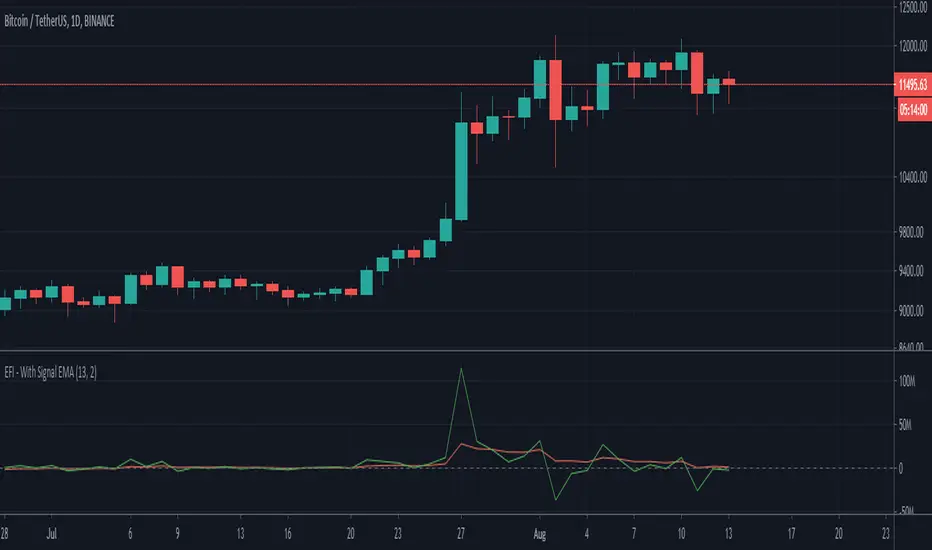 Same as Elders Force Index, but with an Additional EMA for buy and sell signal