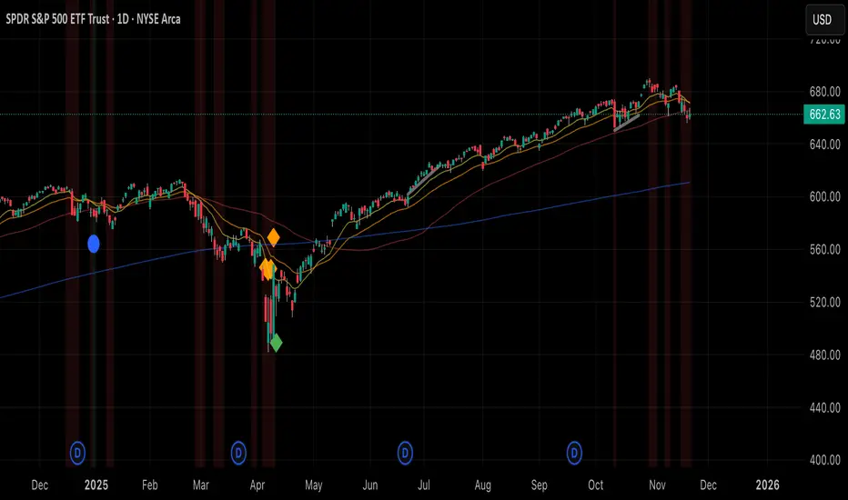 This indicator is a powerhouse combination of three distinct market internal strategies developed by Ralph Vince and Larry Williams. Instead of using three separate scripts to monitor market health, this tool consolidates them into a single dashboard that analyzes NYSE "New Lows" data to detect structural rot, capitulation, and crash risks.The first component is the Volatility Vulnerability monitor, which identifies when the market structure is decaying. It looks for an extended period where the number of New Lows fails to drop to negligible levels. If you see an Orange Circle while price is above the 50 SMA, it is a major warning that the uptrend is hollow and prone to a crash. Conversely, a Blue Circle below the 50 SMA suggests the weakness is already priced in, offering a contrarian entry signal.