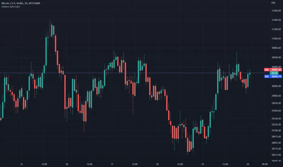 One of the biggest complaints about Heikin Ashi is the lack of real price data you receive. This attempts to give you as much information as possible by displaying both the candle color and the Heikin Ashi color. The wick takes on the original color while the body of the candle gets the Heikin Ashi color. The only downside to this method is that you do not get to see candle patterns. As always I hope you enjoy this release!