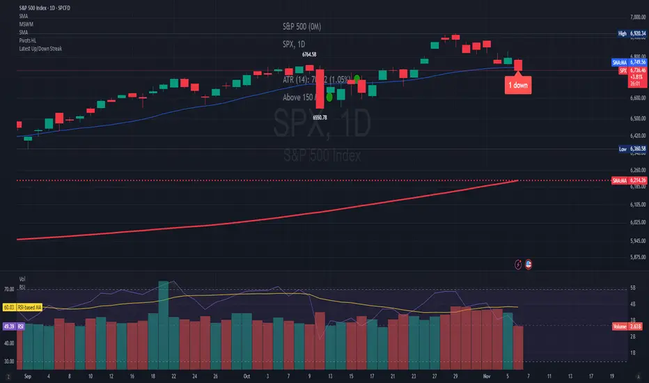 This indicator allows following the latest streak of ups and downs according to clos price. It is made as a tool for investors wanting to time their buy/sell according to streaks.