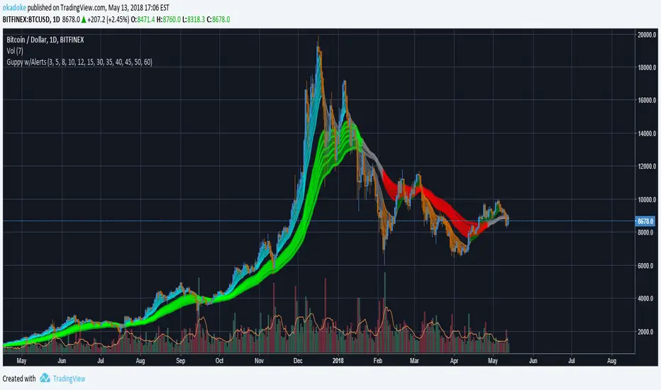 Standard Guppy indicator with alerts for when EMA agreement (color) changes
