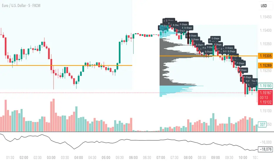 Simple VP Shape Detector is a lightweight Pine Script tool designed to help traders quickly identify the four major Volume Profile shapes commonly used in orderflow and auction-market theory: