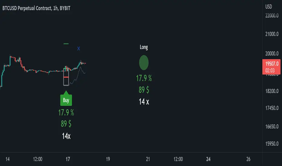 Upon execution of this script, you will be asked to click on the chart’s timeline. The position will then lock onto the candlesticks in that area and automatically (according to this script’s algorithm) calculate a “reasonable” leverage, as well as stop-loss, targets, and more.