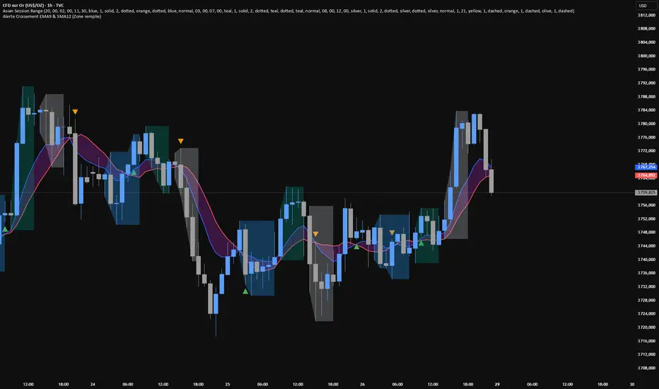 Alerte Croisement EMA9 & SMA12 (Zone remplie)